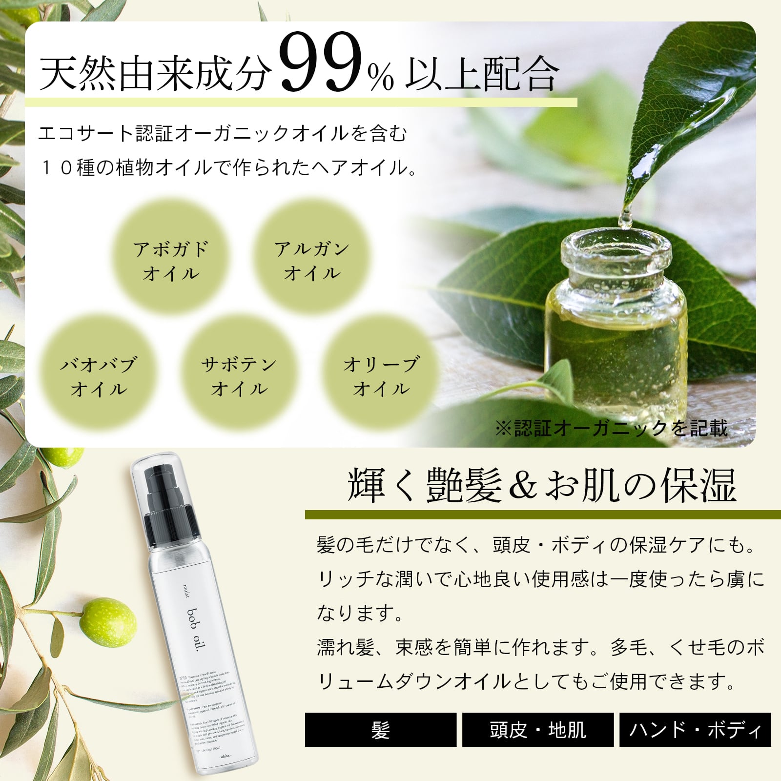 エコサート認証オーガニックオイル※ を含む10種の植物オイルで作られたヘアオイル。